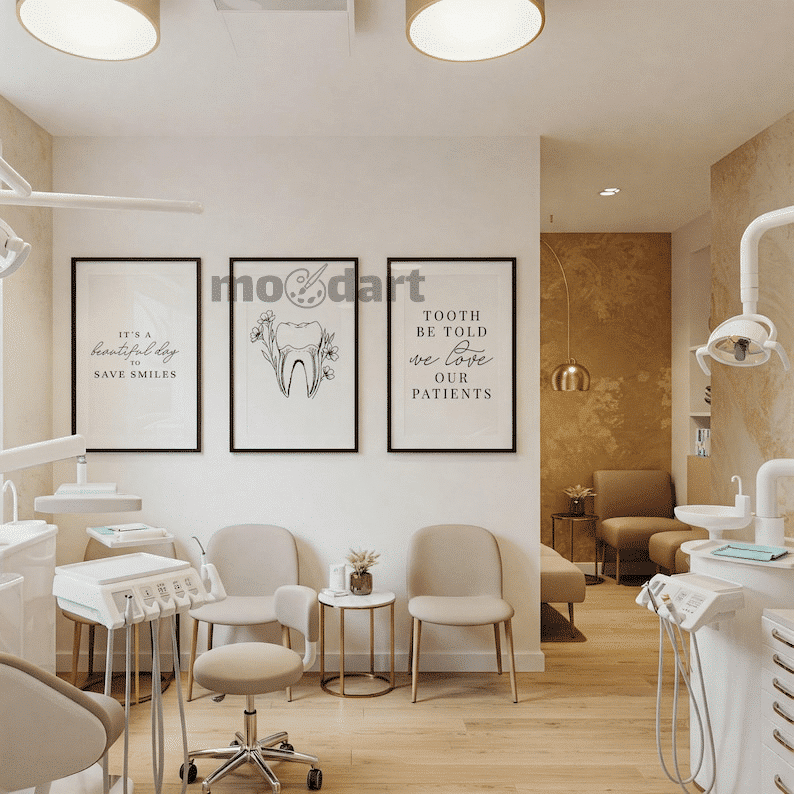 Apportez une touche moderne, professionnelle et chaleureuse à votre cabinet dentaire avec ce pack de posters muraux sur le thème de la dentisterie. Chaque affiche a été pensée pour créer une ambiance rassurante et élégante, mêlant minimalisme, humour et esthétisme.